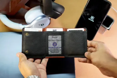 The Bullet Wave is a compact yet impactful wallet crafted from high-quality cow leather. Designed for practicality and style, it features a dual-tone leather construction, adding a refined, elegant touch. The distinctive wave design along the top edge enhances its uniqueness and visual appeal.Material: Premium Cow LeatherSize: Approximately 2.9 x 3.8 inchesWallet type : Trifold Interior Features:Two card slots, each capable of securely holding up to three cardsOne dedicated ID card slotOne spacious cash compartmentSecured with a sturdy snap button closure for added safetyExterior Features:One quick-access slot on the back, ideal for your most frequently used cardsCombining functionality with sophisticated design, the Bullet Wave is a highly versatile and stylish choice for everyday use.