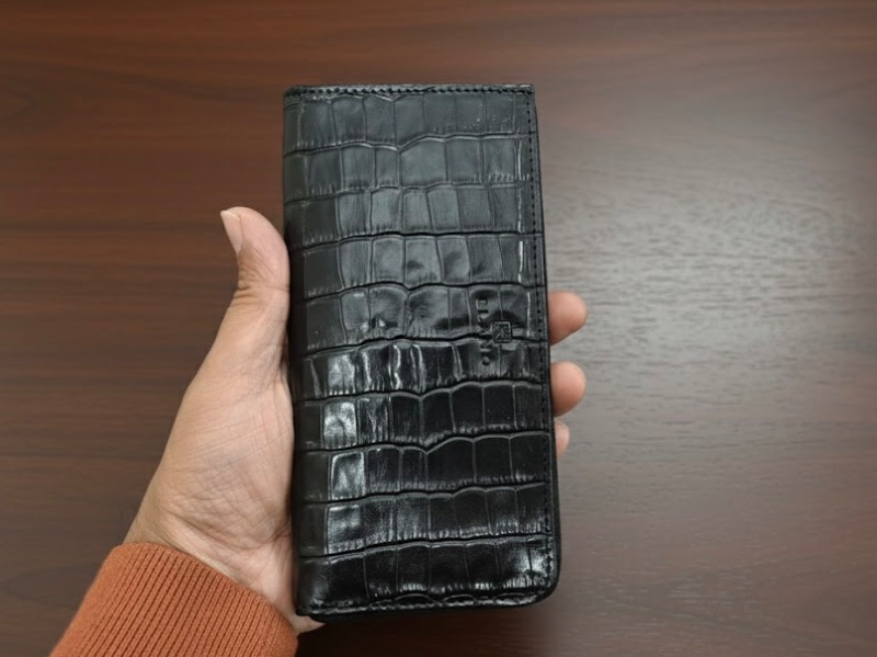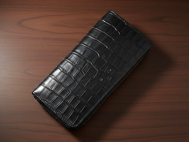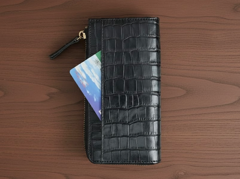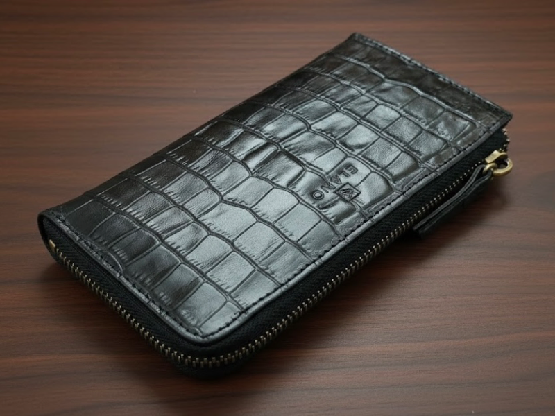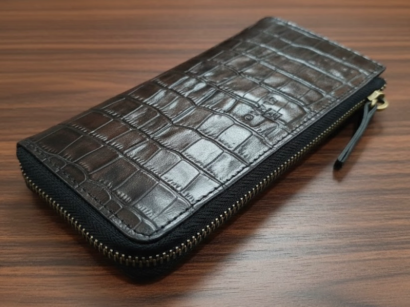 Crafted from authentic cow leather with a crocodile-embossed pattern, the Zipline Wallet offers a bold and refined look. Sized at 7 x 3.4 inches, it features a secure zip-lock closure, an easy-access back pocket, and well-organized interior card and coin compartments. Designed for style and functionality, this wallet delivers a unique vibe and is not intended to carry a mobile phone.