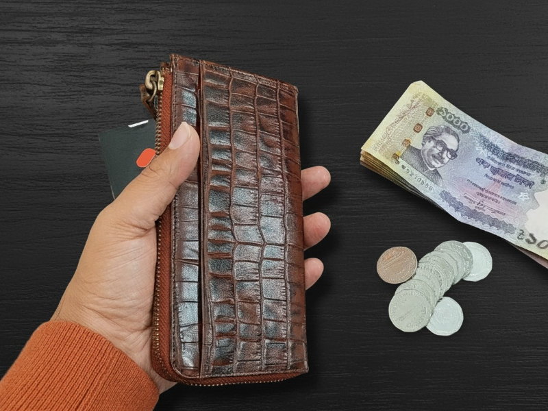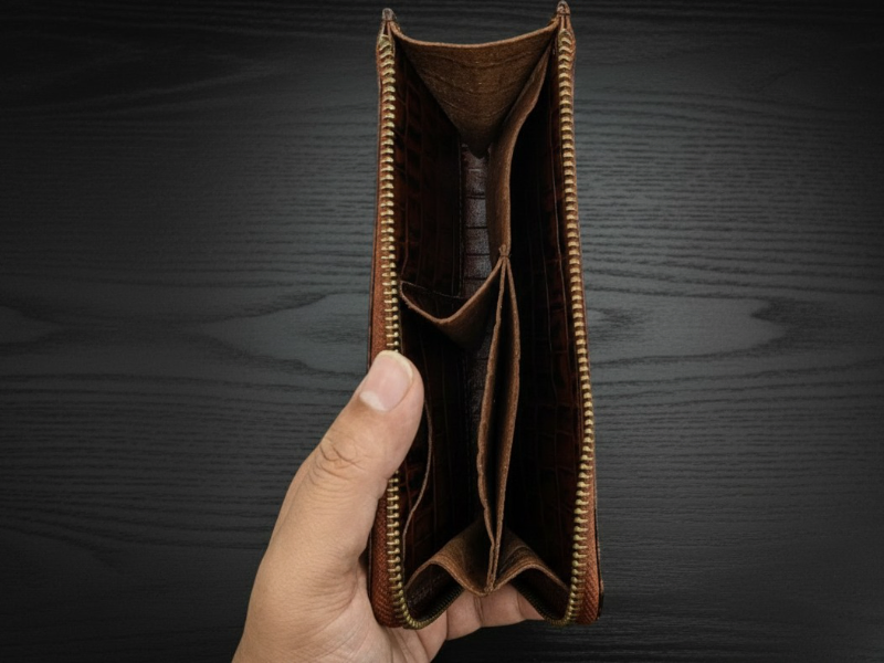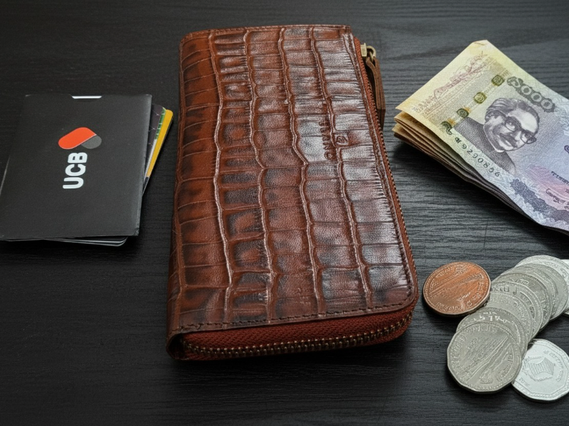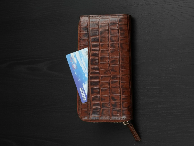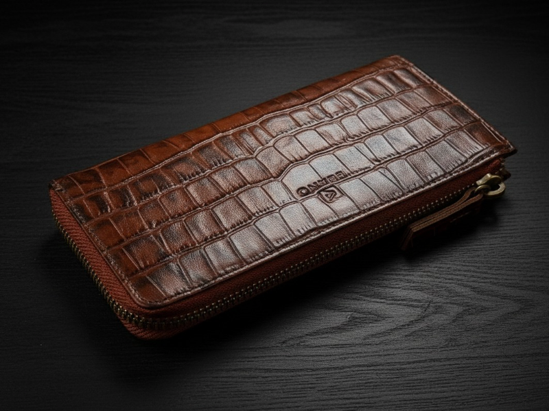 Crafted from authentic cow leather with a crocodile-embossed pattern, the Zipline Wallet offers a bold and refined look. Sized at 7 x 3.4 inches, it features a secure zip-lock closure, an easy-access back pocket, and well-organized interior card and coin compartments. Designed for style and functionality, this wallet delivers a unique vibe and is not intended to carry a mobile phone.